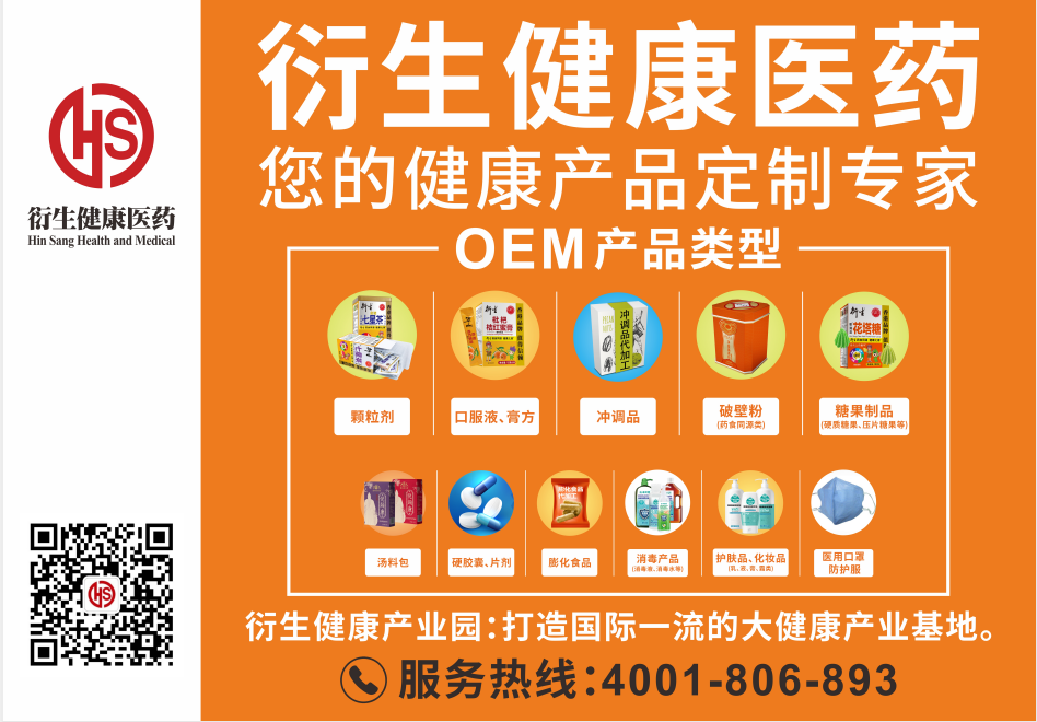 衍生健康医药产业园综合研发、配方设计、产品备案、生产加工及产品检验为一体,引进国内外先进的生产加工设备,具备多条可作全自动生产包装的流水线,以生产衍生品牌系列食品、保健品等产品为主,同时专业提供优质的符合GMP要求的外品牌委托加工生产(OEM)及受委托研发设计生产代工策划(ODM)服务,业务涵盖饮料、方便食品、糖果制品等健康食品类目。