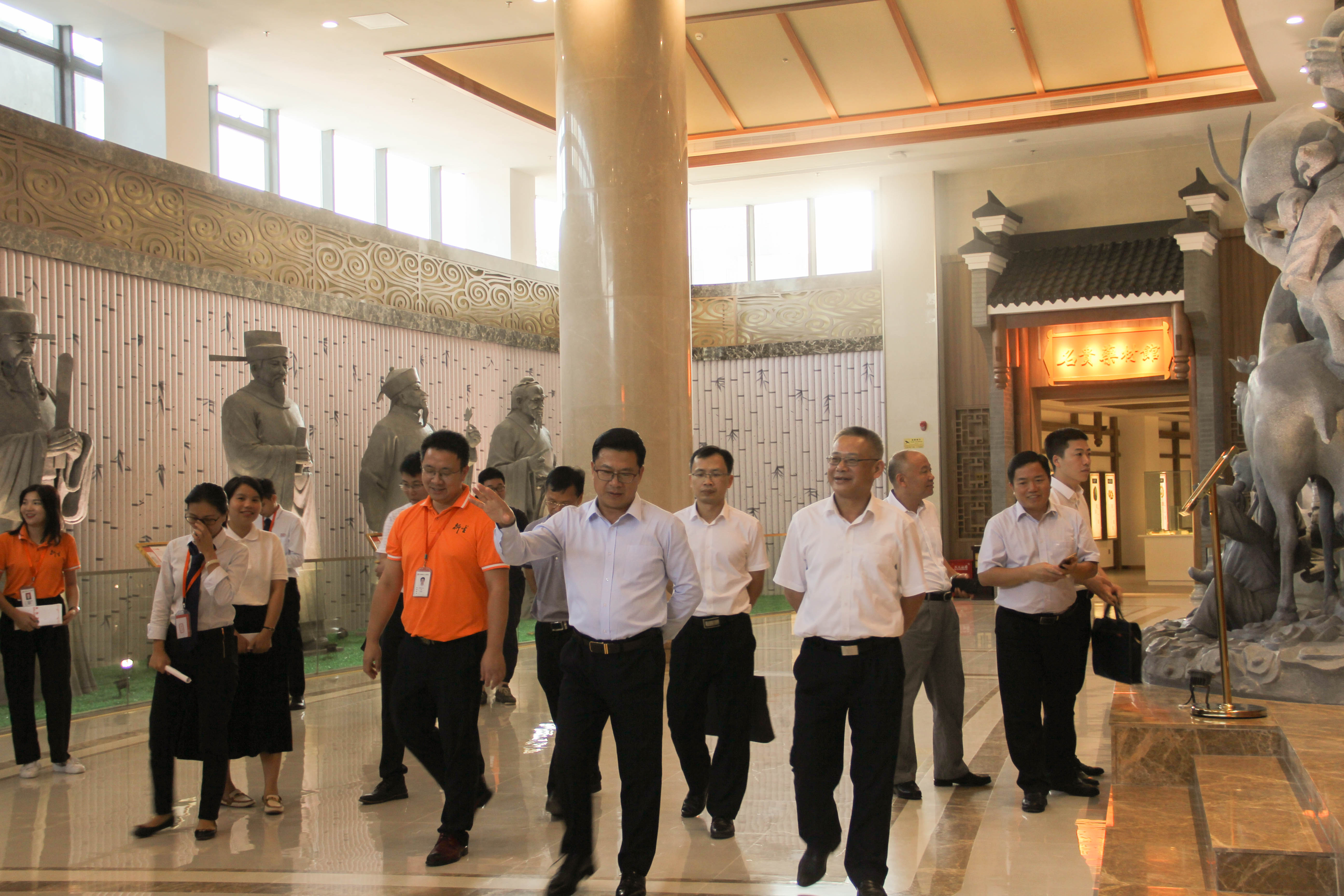 调研组在彭主席、副总裁和文旅部负责人的引领下参观了养生健康馆、彭祖养生汤体验区、彭氏名人馆、广东南药馆、名贵药材馆和衍生馆,深入了解了衍生健康医药产业园的企业发展状况、未来规划、人才现状及需求情况,同时与企业相关负责人围绕衍生主营业务、产品销售、经营模式等方面进行了深入交谈。