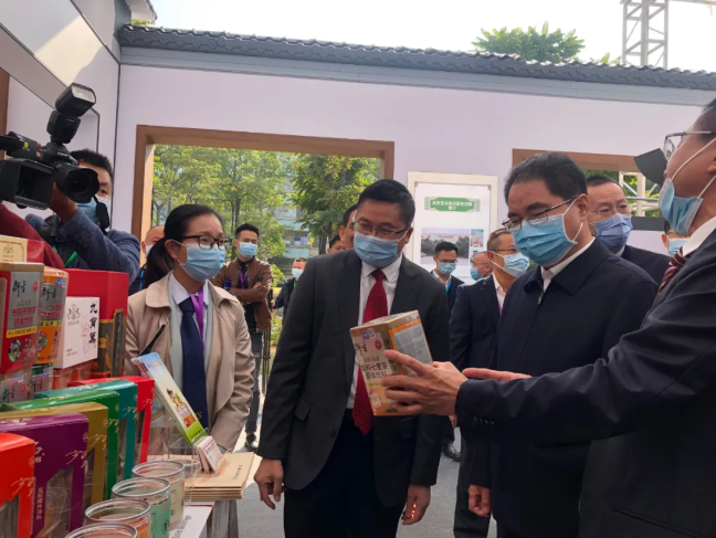 中国工程院院士,中国中医科学院院长黄璐琦,广东省委常委叶贞琴,省农业农村厅党组成员、副厅长冯彤等省领导莅临衍生健康医药展馆参观指导